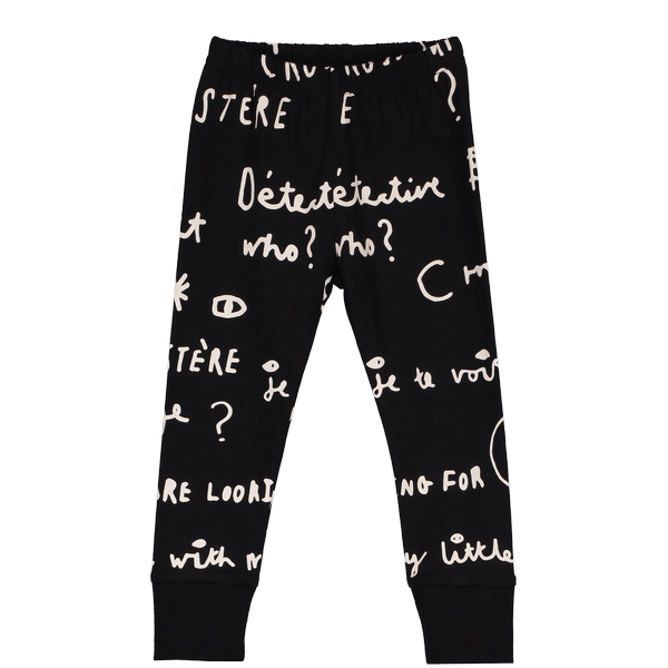 Black base with Beau’s detective notebook allover print in white.